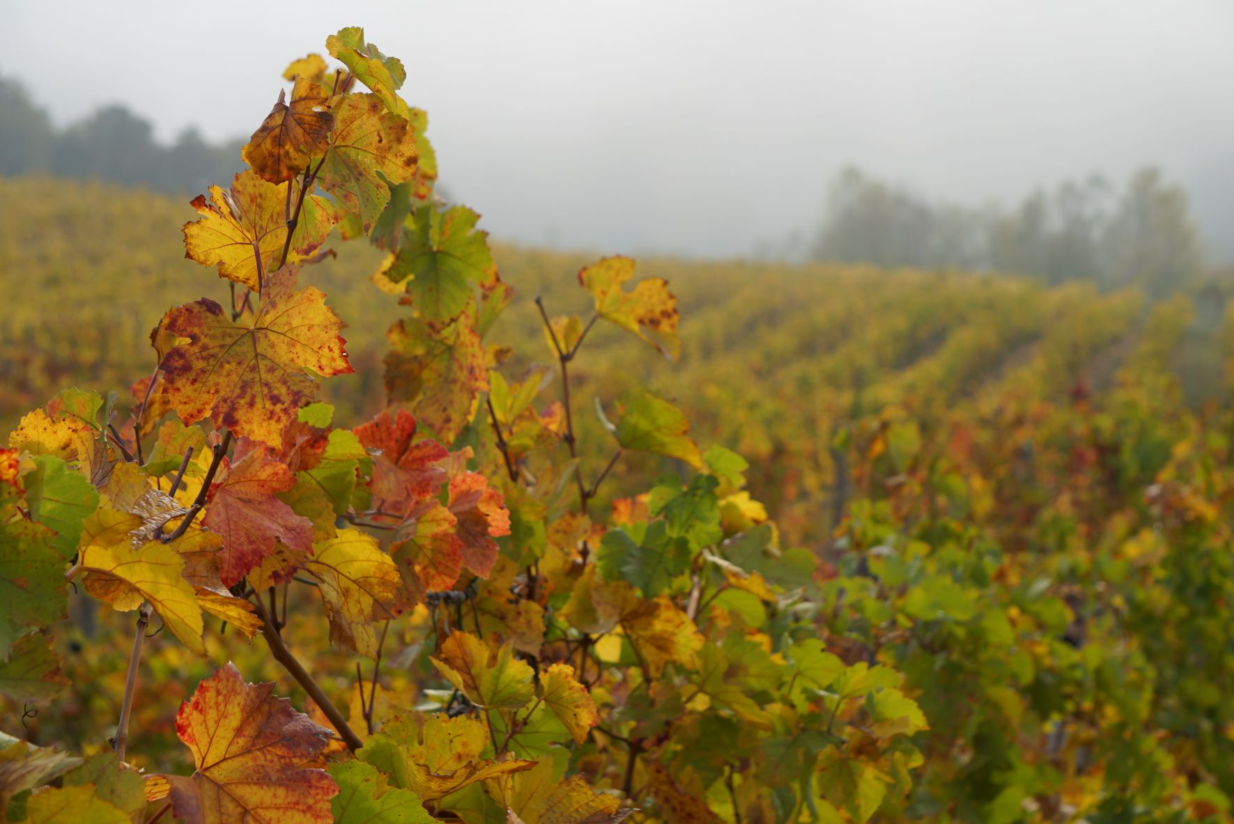 Le foglie delle viti iniziano a cambiare colore: dal verde brillante dell’estate si passa a gialli intensi, arancioni caldi, rossi accesi e porpora profondi. È il fenomeno del foliage, e nei nostri filari assume una forma unica e affascinante.